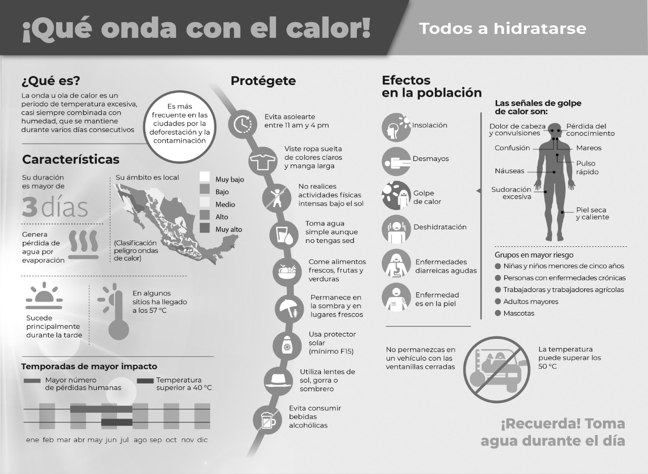 Por último, la CEPC solicita estar al pendiente de sus redes sociales para ver la información del clima y de algunas acciones en materia de prevención y en caso de tener alguna emergencia por golpe de calor, llamar al 911.