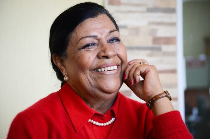 “Vengo de la pobreza, conozco la necesidad”, justifica la senadora –perlas en los aretes y el collar, rojo en las uñas, mismo color de blusa y suéter- su identificación con el pueblo y el ideario del líder de MORENA.
