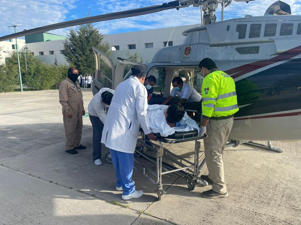 Para su atención médica especializada se coordinó su traslado con la ambulancia aérea que fue puesta al servicio de la ciudadanía por la gobernadora Lorena Cuéllar Cisneros.