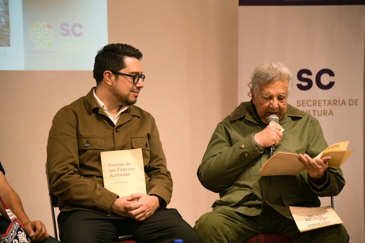 “Todos estos eventos afortunados coinciden en esta tarde que se puede hacer entrega de la carpeta y que Leopoldo, en su carácter de coordinador de la misma y de gran artista, podrá hacerlo en unos momentos… este homenaje, también de alguna manera, lo es como deber ser un homenaje al poeta y a su legado”, expuso Martínez Velázquez.