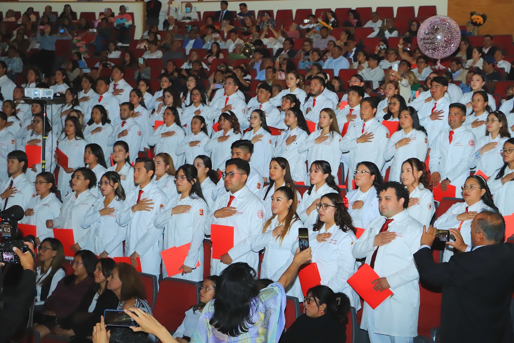 En esta ceremonia, los graduandos realizaron el juramento ético del médico, el cual fue dirigido por Jesús Everardo Vázquez García, quien también recibió un reconocimiento por su desempeño académico.