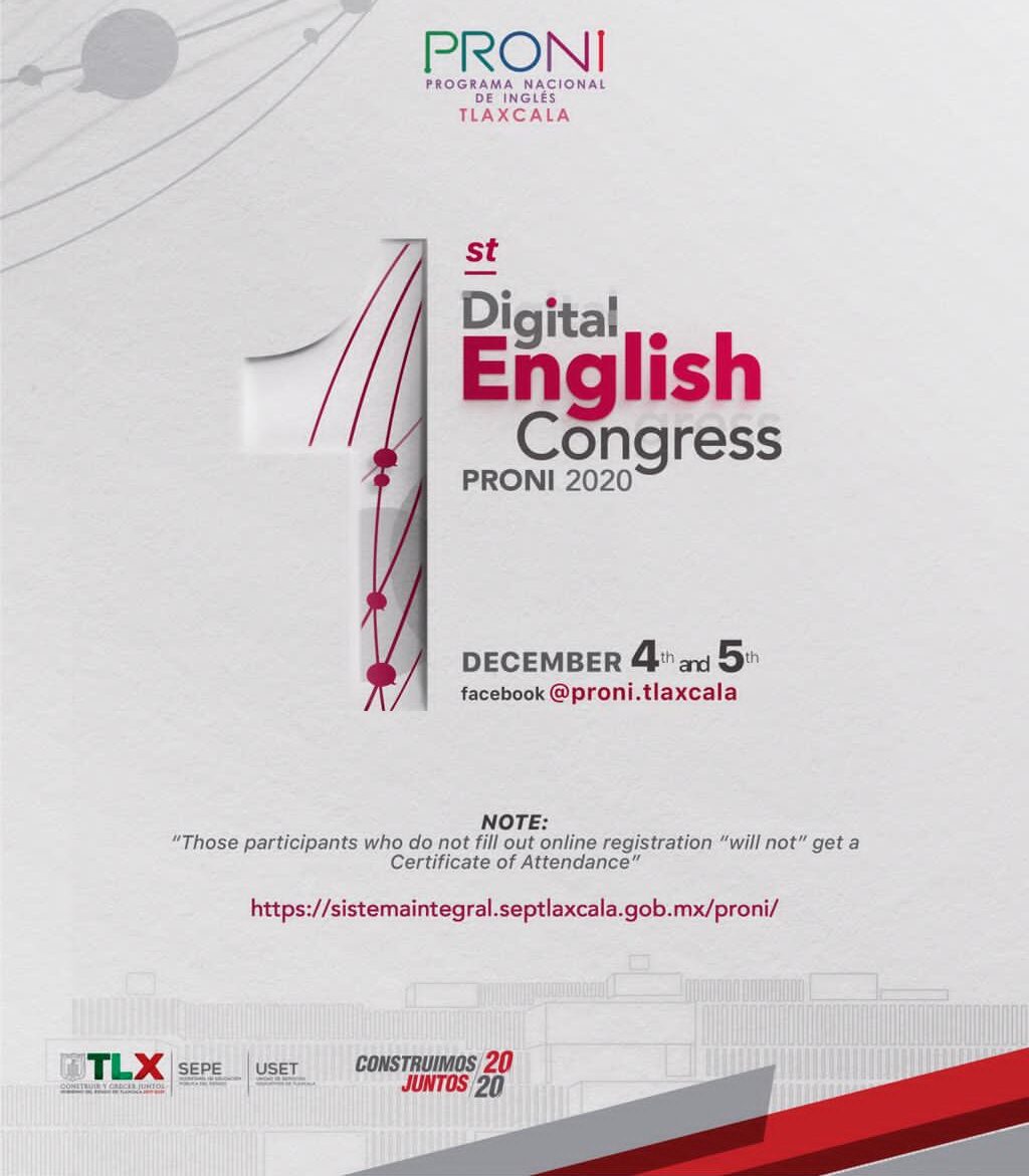 La Secretaría de Educación Pública del Estado (SEPE) y la Unidad de Servicios Educativos de Tlaxcala (USET), realizarán el Congreso Estatal «1st Digital English Congress», dirigido a maestros que participan en el Programa Nacional de Inglés (PRONI).