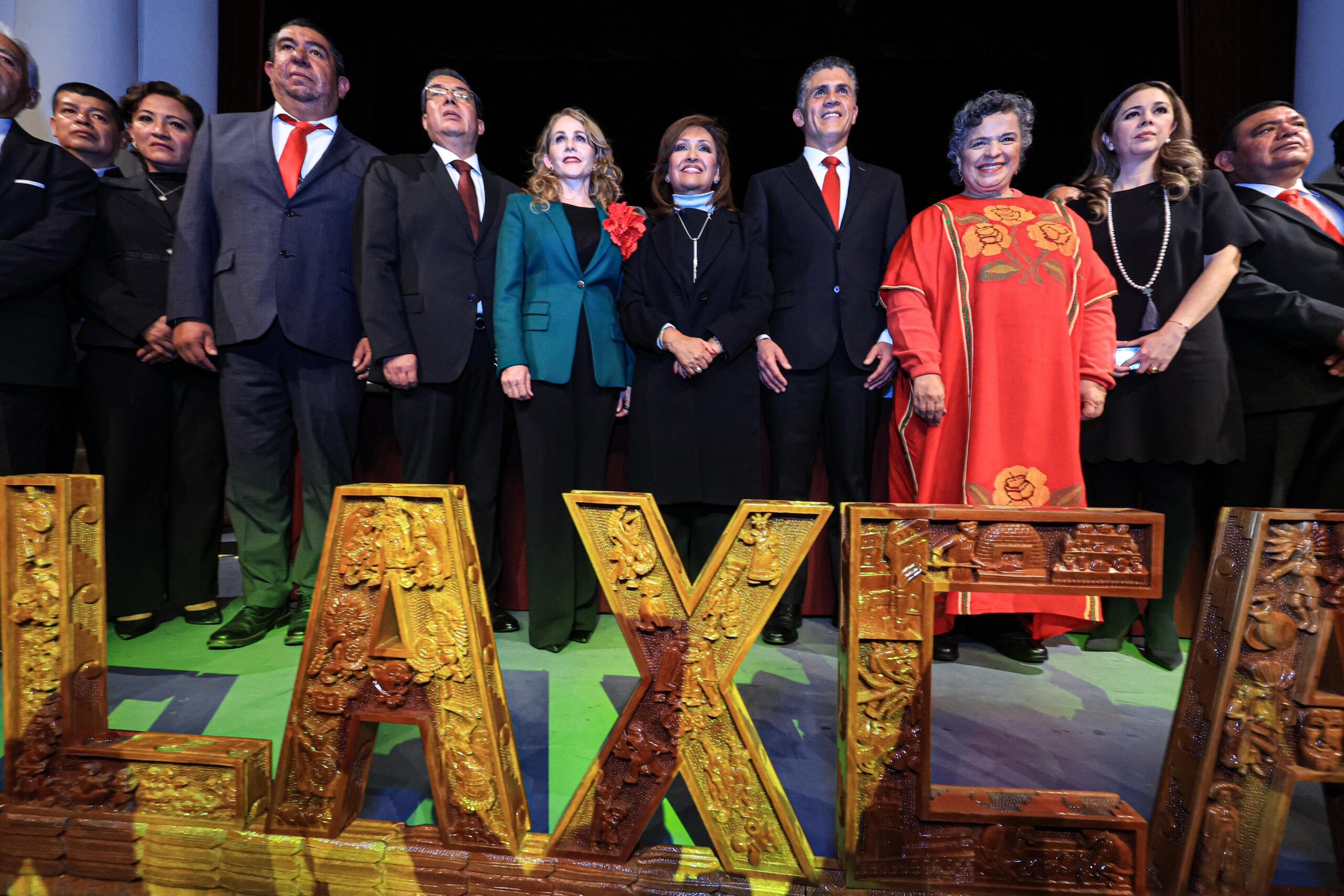 La gobernadora Lorena Cuéllar Cisneros acudió como invitada especial a la conmemoración del 499 aniversario de la fundación de la capital, donde el presidente municipal, Alfonso Sánchez García, entregó la presea Tlaxcala 2024 a Beatriz Paredes Rangel.