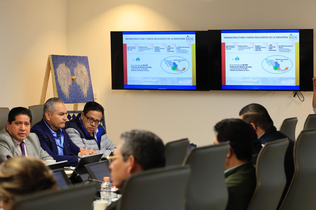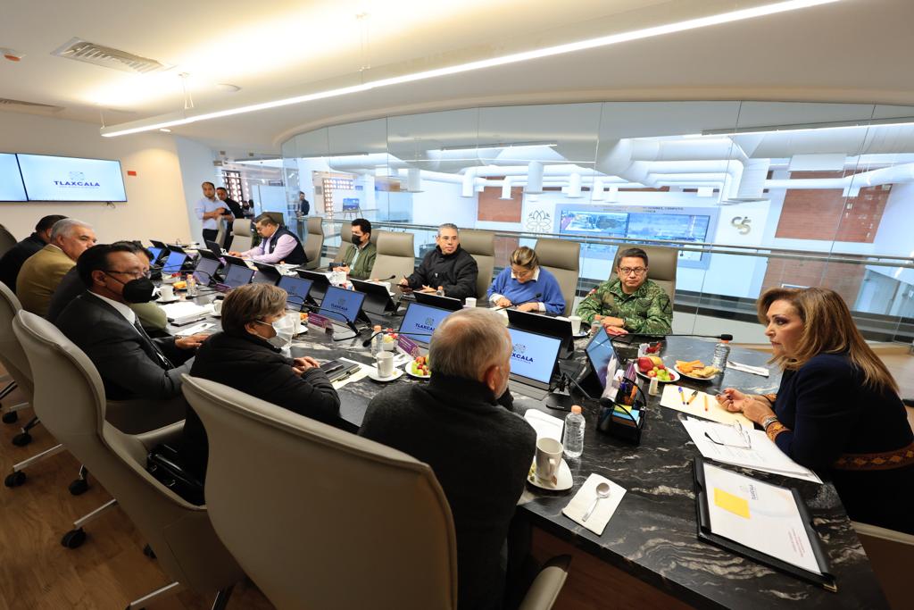 Integrantes de la Mesa para la Construcción de la Paz y Seguridad, que encabeza la gobernadora Lorena Cuéllar Cisneros, se reunieron este martes con empresarios de la Asociación de Distribuidores de Gas L.P., en Tlaxcala.