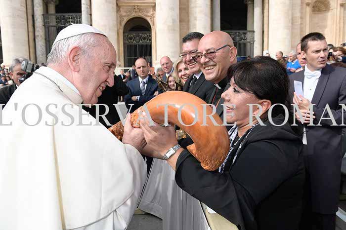 El periódico nacional de la Ciudad del Vaticano, L´Osservatore Romano publica en su apartado Sagrato Destro de la audiencia general del 18 de octubre las imágenes donde la presidenta entrega en manos del pontífice un bastón de mando tallado a mano y que contiene elementos históricos y simbólicos de la Ciudad de Tlaxcala.