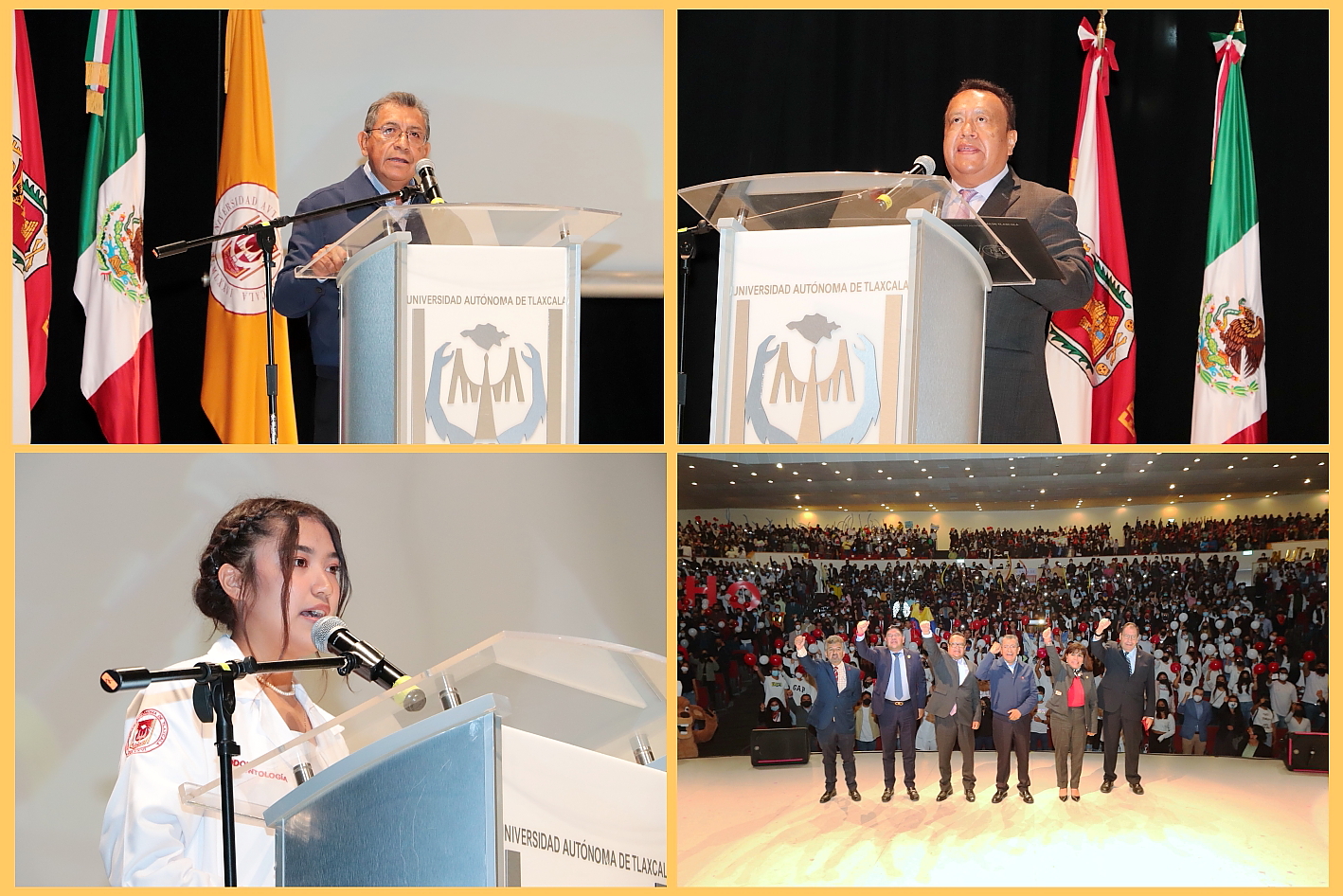 Al hacer uso de la voz, Belinda Itzel Murias Nuñez, en representación de sus compañeros, destacó que, en el alma máter de los tlaxcaltecas, encontrarán un espacio seguro para su formación profesional y para consolidar este proyecto de vida, que requiere de compromiso, solidaridad y sacrificio para ser profesionistas exitosos, por ello, los invitó a poner su mejor esfuerzo y dedicación, involucrándose siempre en las diversas actividades académicas, culturales y recreativas, que les permita crecer en conocimiento y sabiduría.
