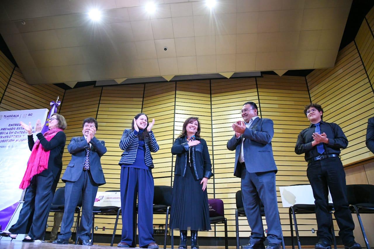 Durante la ceremonia, realizada en la Sala de Conciertos Estanislao Mejía, se entregaron premios de 7 mil pesos para la categoría de Trayectoria Musical y 3 mil pesos para la categoría de Composición, con el objetivo de seguir motivando a los músicos tlaxcaltecas a profesionalizarse y consolidar su carrera artística.
