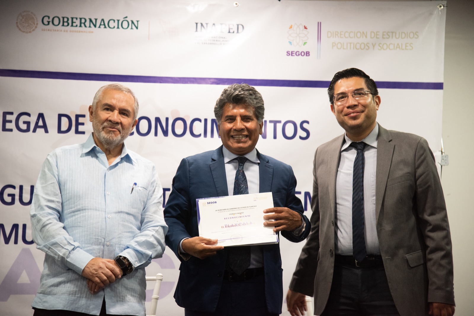El titular de la Secretaría de Gobierno (Segob), Sergio González Hernández encabezó la ceremonia de entrega de reconocimientos del programa “Guía Consultiva de Desempeño Municipal 2022–2024” que entregó el Instituto Nacional para el Federalismo y el Desarrollo Municipal (Inafed) a 28 municipios de la entidad.