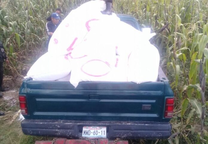 En Operativo Conjunto Entre SEDENA, PF y CES se Recuperaron Bultos de Polietileno Robados en el Municipio de Huamantla