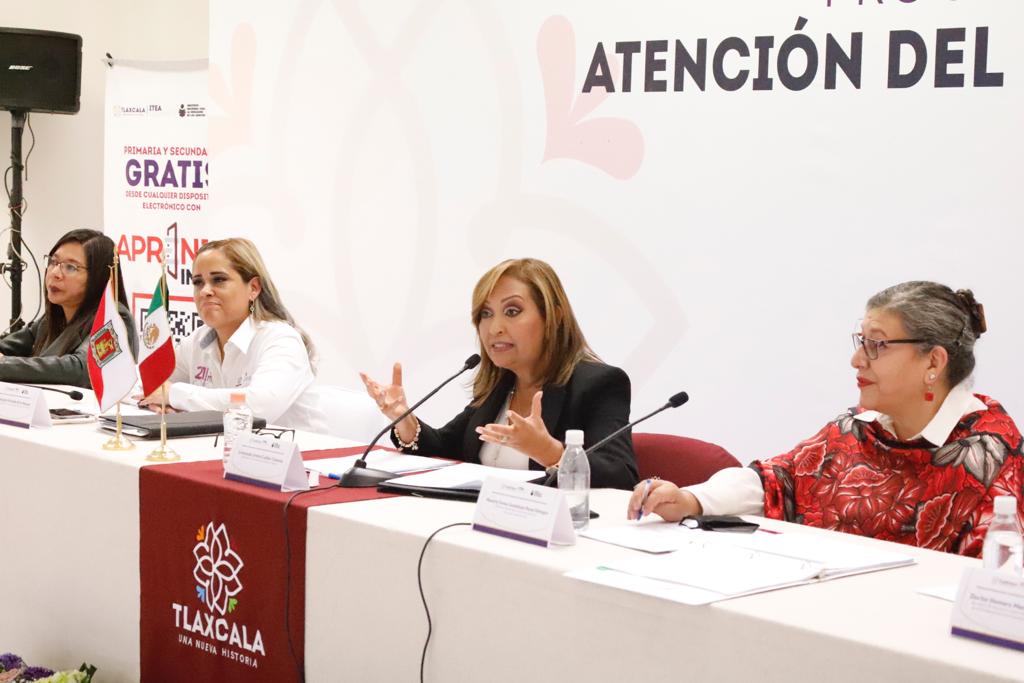 En el Salón Apizaco del Hotel San Francisco de la ciudad capital, la titular del Ejecutivo local indicó que se trabaja en diversas estrategias para impulsar el desarrollo educativo, como las jornadas para la incorporación de educandos en zonas de alto riesgo; además, se emplea el esquema “Aprende INEA” a través del programa del presidente de la República, Andrés Manuel López Obrador, “Internet para todos” a efecto de llegar a más hogares.