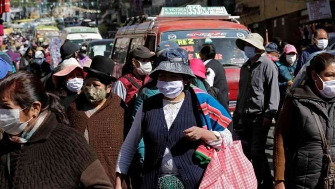 Bolivianos con cubrebocas en céntrica calle de La Paz, Bolivia. FOTO El Litoral /marca.com