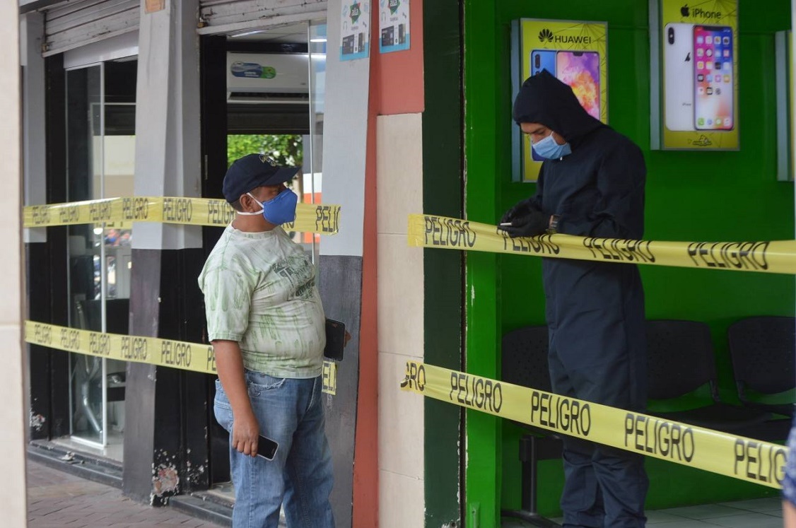 Un hombre ante cintas amarillas colocadas para impedir columnas o colas, en mayo en Machala, Ecuador. FOTO Freddy Macas, eluniverso.com