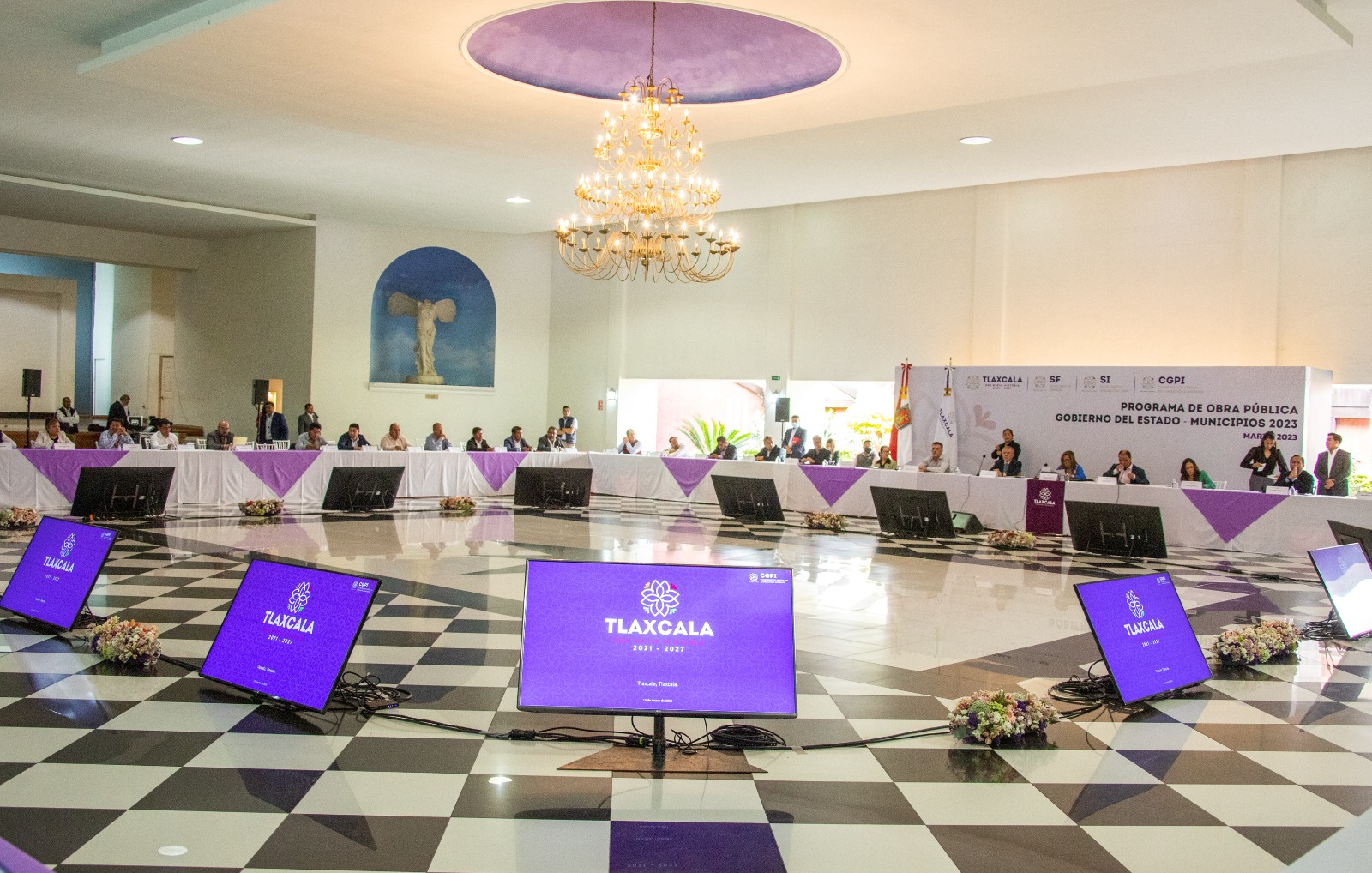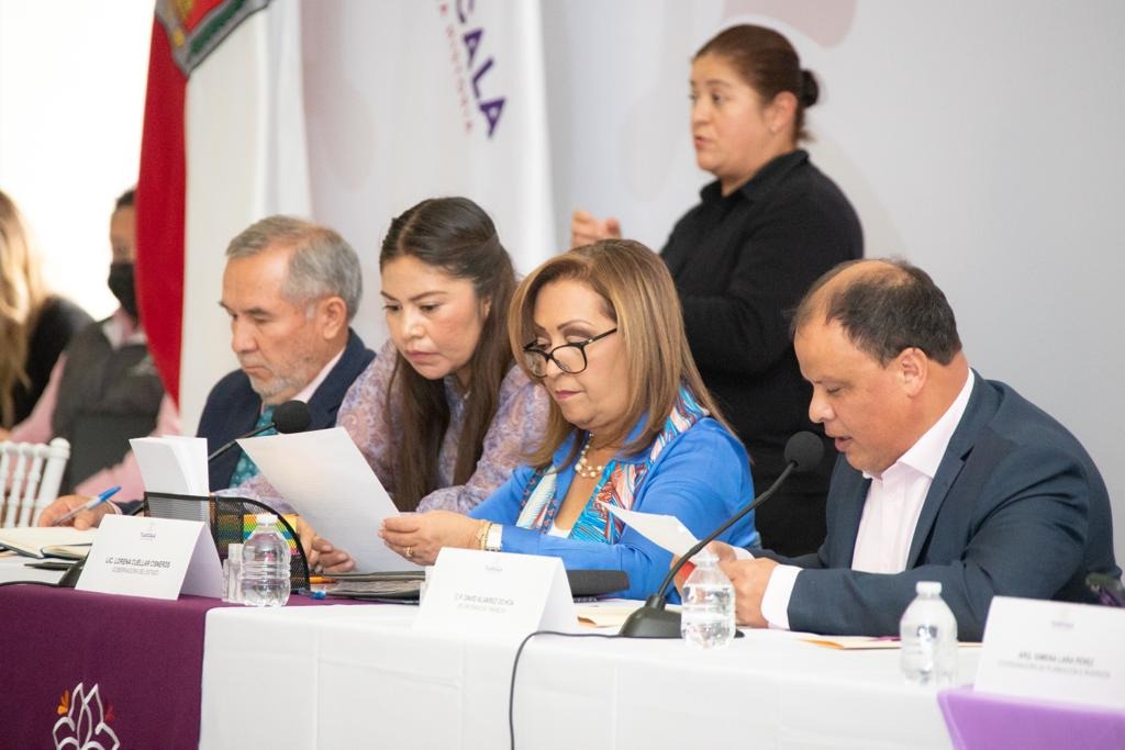 La gobernadora Lorena Cuéllar Cisneros sostuvo una reunión con las y los 60 alcaldes para presentarles el Programa de Obra Pública Gobierno del Estado–Municipios 2023, un esquema de coinversión peso a peso con el fin de apoyarlos en la ejecución de proyectos que contribuyan al desarrollo del estado y beneficien a la población tlaxcalteca.