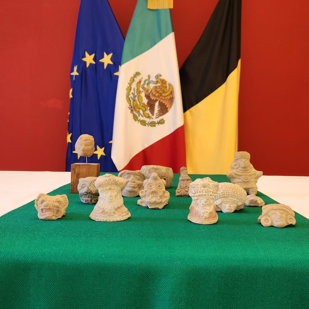 El embajador de México en Bélgica, Rogelio Granguillhome Morfín, recibió el día de hoy, 14 de agosto de 2023, 20 piezas arqueológicas tras ser dictaminadas por especialistas del Instituto Nacional de Antropología e Historia (INAH) como patrimonio cultural de nuestra nación. Los objetos proceden de culturas originarias del Altiplano Central y fueron elaboradas durante el periodo Clásico mesoamericano (100-650 d.C.).