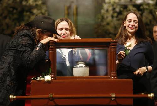 Una hora antes arribaron las hijas del artista, Ximena, María José y Mariana. Varias coronas de flores esperaban acomodadas en las paredes para ser llevadas al vestíbulo del recinto. Llegaron las cenizas y detrás de éstas, en una camioneta, Beatriz del Carmen Bazán.