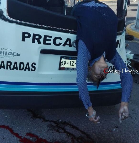 En el primer caso, un autobús de la fatídica familia ATAH, propiedad de la familia del actual alcalde de Apizaco, “venía corriendo como loco” según testimonio de quienes viajaban a bordo del camión perdió el control de la unidad y se impactó contra una combi Flecha Azul, de la cual una persona quedo literalmente colgada por la ventana trasera.