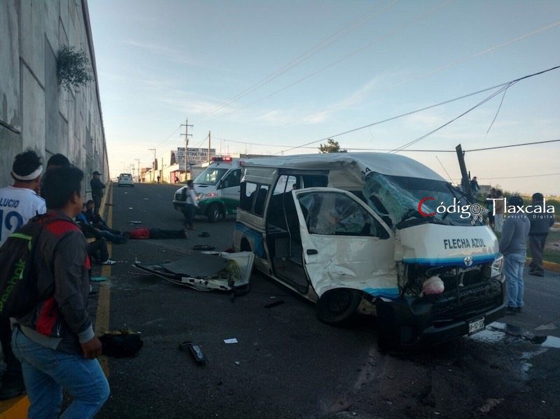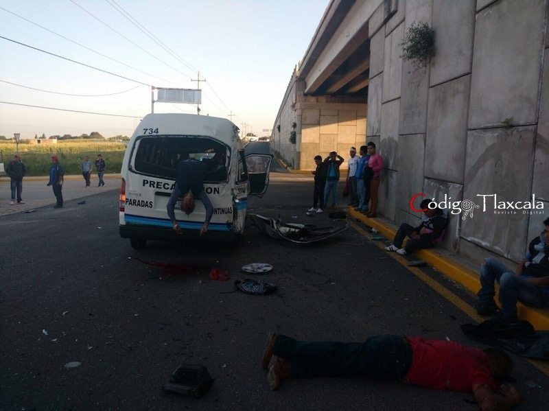 Conductor de Combi se Impactó Contra un Puesto de Carnitas en Santa Ana Chiautempan