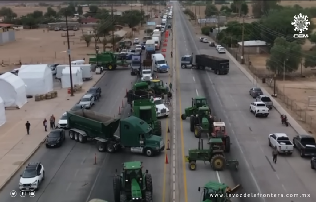 Una semana antes, agricultores del valle de Mexicali, BCN habían bloqueado al grito de “Queremos un país con desarrollo integral”, la carretera Mexicali-San Luis Río Colorado que une Sonora con Baja California, para exigir a la gobernadora se este estado, María del Pilar Ávila del gobernante partido Morena, que convoque a una mesa de nacional de diálogo con las autoridades federales del ramo.