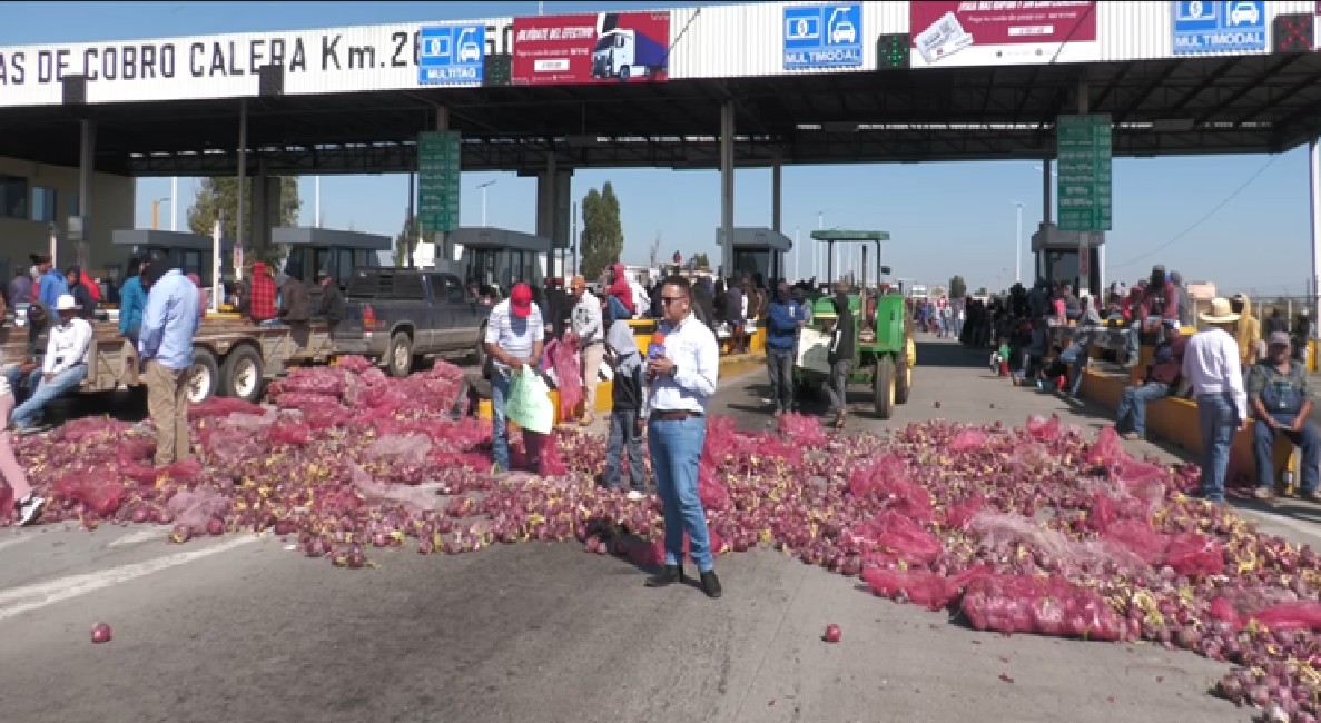 En Zacatecas, agricultores a bordo de tractores, camionetas y camiones de volteo cerraron la caseta La Calera, situada en el km 2 de la carretera XXX, donde tiraron sobre el asfalto su carga de cebolla morada. Lo mismo hicieron a la altura de Osiris, sobre la ruta hacia Aguascalientes. Ambas protestas se centraron en el bajo precio de la verdura allium.