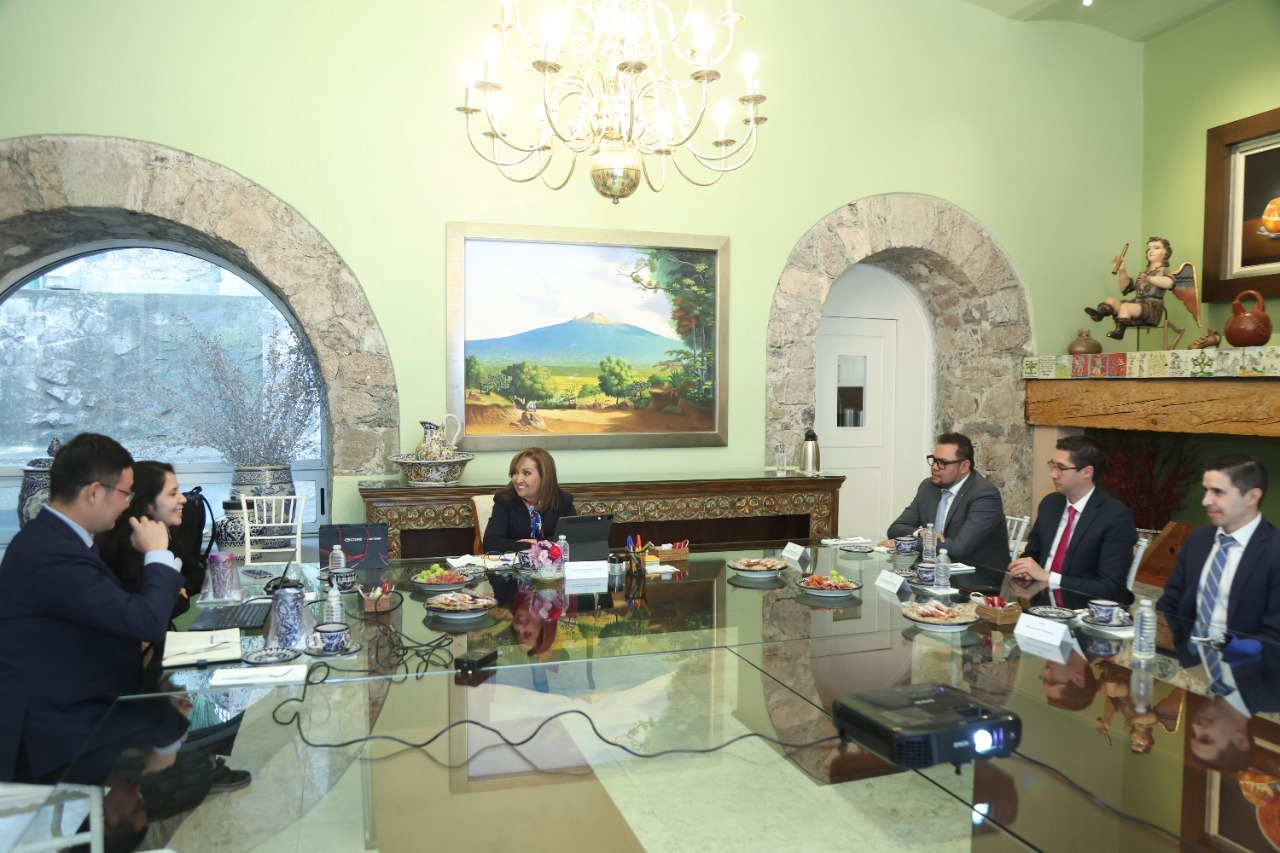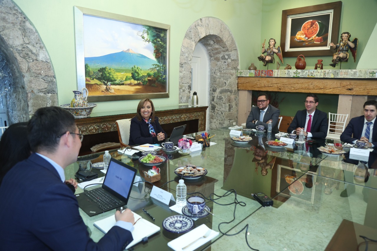 La gobernadora Lorena Cuéllar Cisneros sostuvo una reunión con el gerente regional para América de la empresa china Guangzhou Automobile Group Co., Ltd. (Grupo GAC), Kai Zhang, quien visitó Tlaxcala para conocer las oportunidades comerciales con las que cuenta el estado.
