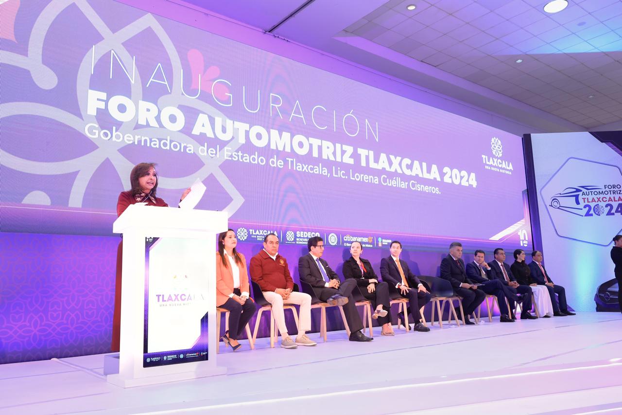 La gobernadora Lorena Cuéllar Cisneros destacó el liderazgo de la entidad en el sector automotriz, al referir que en los últimos años 13 países han invertido en la región, lo que representa el 50 por ciento de las inversiones totales de Tlaxcala.