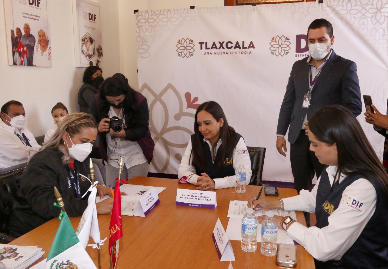 La firma de convenio fue encabezada por la presidenta honorífica y la directora general del Sistema Estatal DIF, Mariana Espinosa de los Monteros Cuéllar y Flor López Hinojosa, respectivamente, así como por la directora del ITEA, Michaelle Brito Vázquez; también estuvieron presentes la coordinadora de la Zona 05, Ana Claudia Ramos González y el responsable de Alianzas Estratégicas del ITEA, Orlando Nava Cabrera.