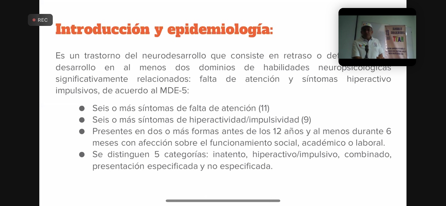 Como parte de las videoconferencias se abordaron los temas: «Cuadro clínico del TDAH», «Sexualidad de los adolescentes con TDAH», «Intervención nutricional de niños, niñas y adolescentes con TDAH».