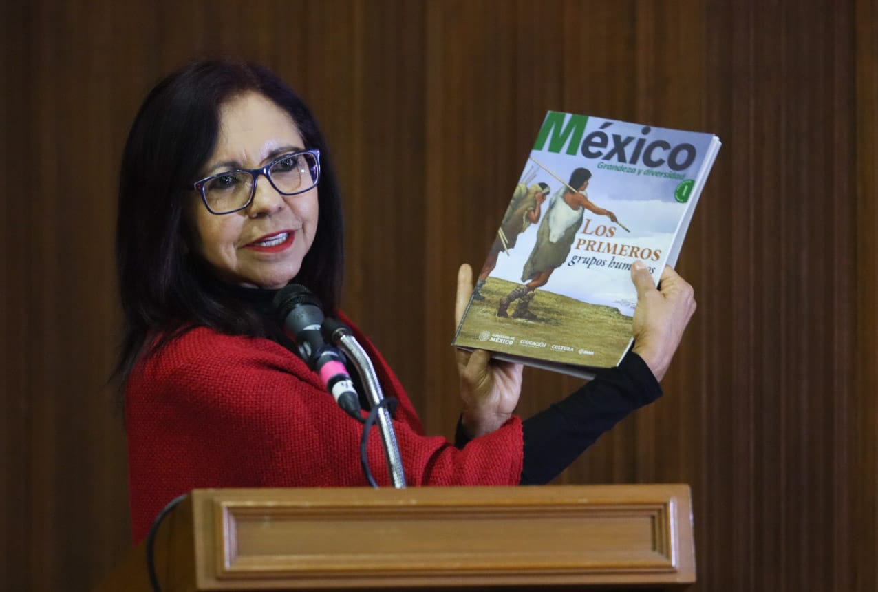 Con la presencia del director general del Instituto Nacional de Antropología e Historia (INAH), Diego Prieto Hernández, la titular de la SEP informó que este ejemplar, que forma parte de la nueva familia de Libros de Texto Gratuitos, ya se distribuyó a siete millones de estudiantes de cuarto, quinto y sexto de primaria en todo el país.