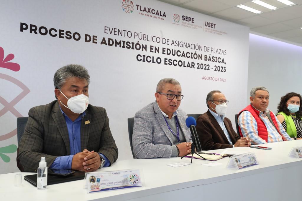 }Autoridades de la Secretaría de Educación Pública del Estado (SEPE) y de la Unidad de Servicios Educativos de Tlaxcala (USET) realizaron el evento público de asignación de 54 plazas definitivas del proceso de admisión de nuevo ingreso a educación básica para el ciclo escolar 2022-2023.