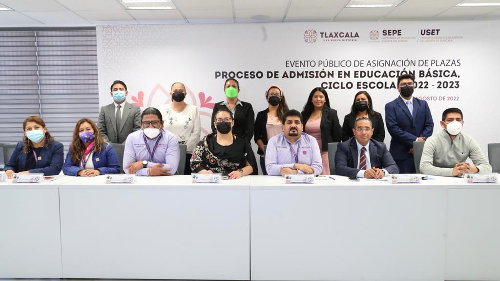 }Autoridades de la Secretaría de Educación Pública del Estado (SEPE) y de la Unidad de Servicios Educativos de Tlaxcala (USET) realizaron el evento público de asignación de 54 plazas definitivas del proceso de admisión de nuevo ingreso a educación básica para el ciclo escolar 2022-2023.
