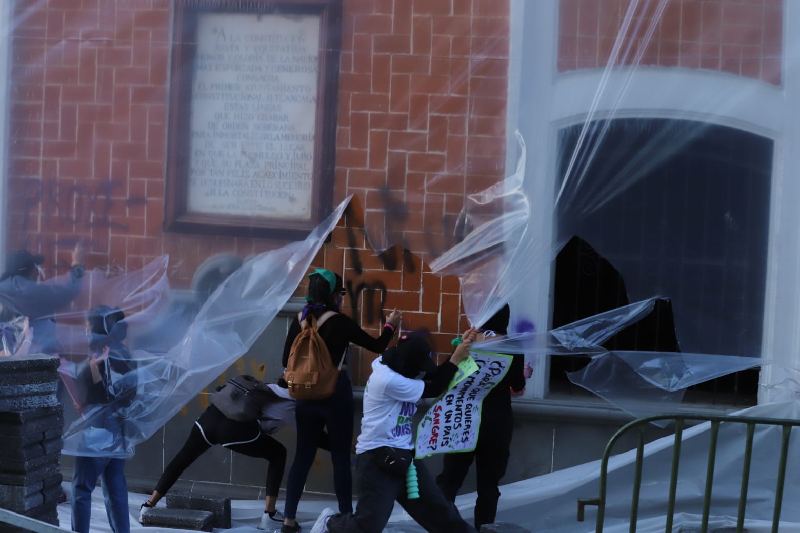 Los medios de comunicación documentaron a través de videos y fotografías cuando un grupo reducido de mujeres cubiertas del rostro y vestidas de negro, violentaron y dañaron el patrimonio cultural de los tlaxcaltecas y no los grupos feministas identificados en Tlaxcala, quienes se mantuvieron al margen.