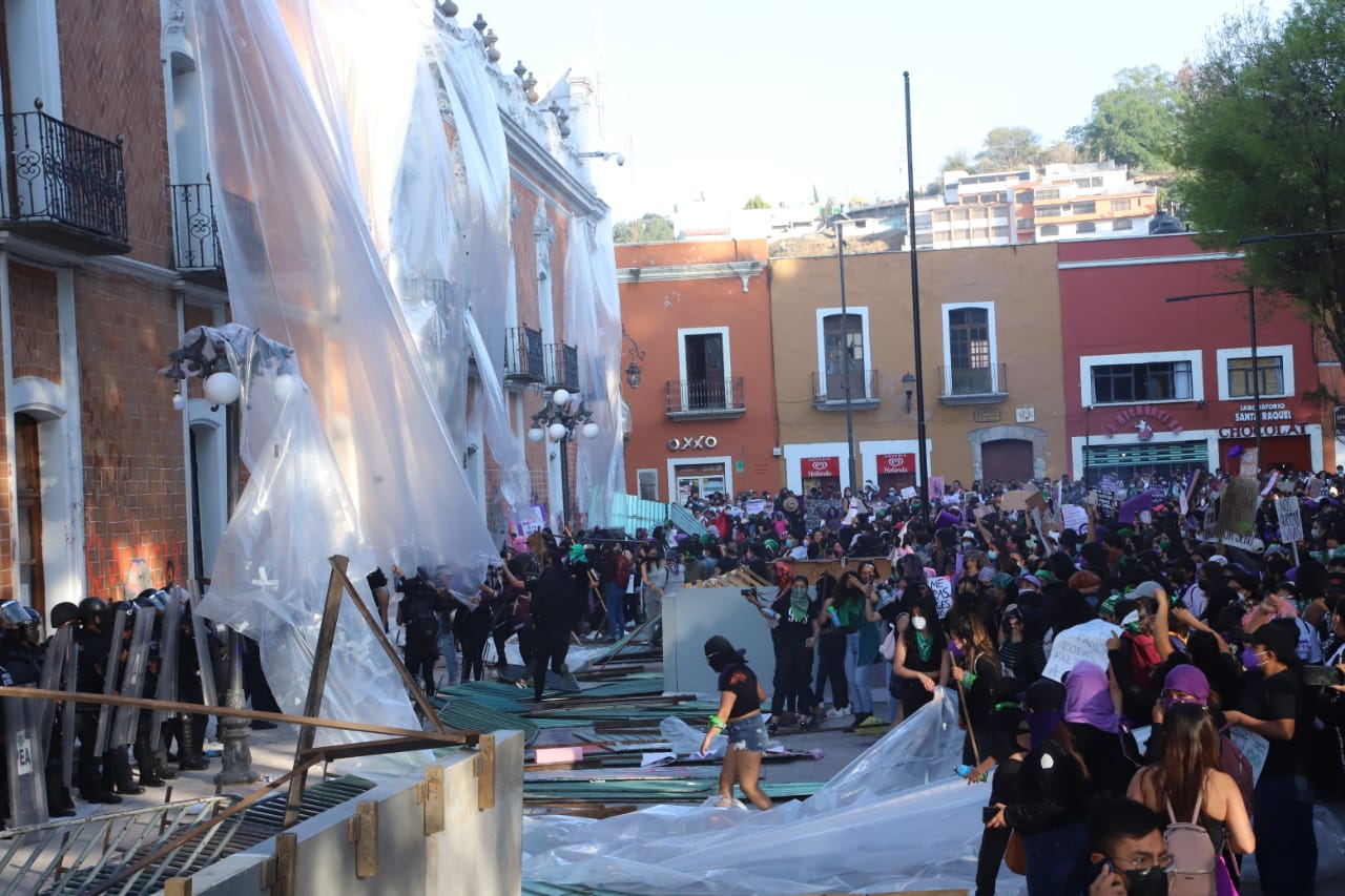 Durante las manifestaciones realizadas en conmemoración del Día Internacional de la Mujer en la ciudad capital de Tlaxcala, en todo momento se garantizó el derecho a la libre expresión de las participantes y se dispusieron espacios para que expusieran sus inconformidades.