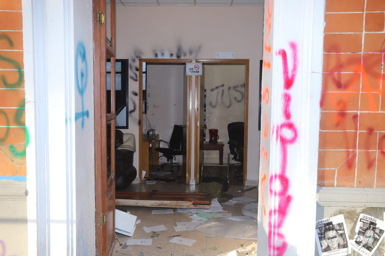 Además de los destrozos al edificio, también provocaron daños irreparables a los murales del maestro Desiderio Hernández Xochitiotzin, el quiosco, las fuentes, la sede del Poder Judicial, el Museo de Arte de Tlaxcala (MAT), los pisos de la explanada de la Plaza de la Constitución y el acceso principal de la Plaza de Toros Jorge “El Ranchero” Aguilar.