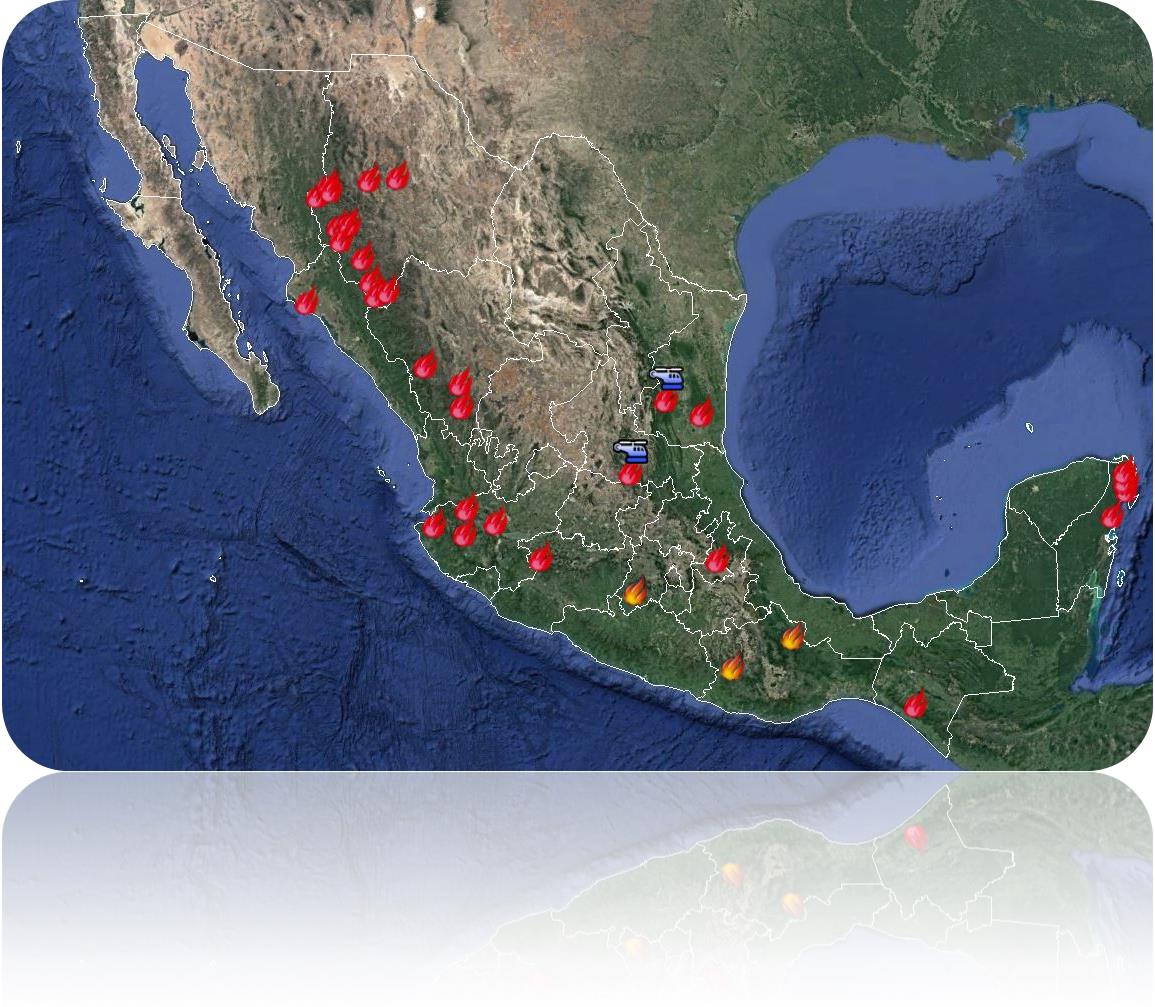 Al corte de las 11:00 horas se registran 36 incendios forestales activos ubicados en 13 estados del país.