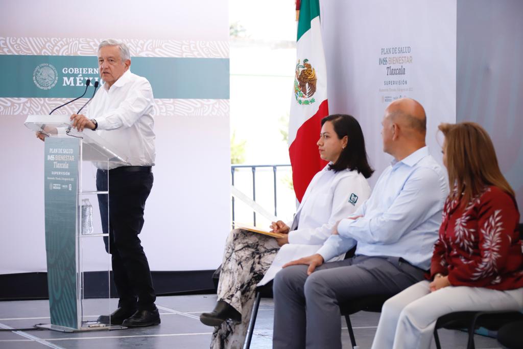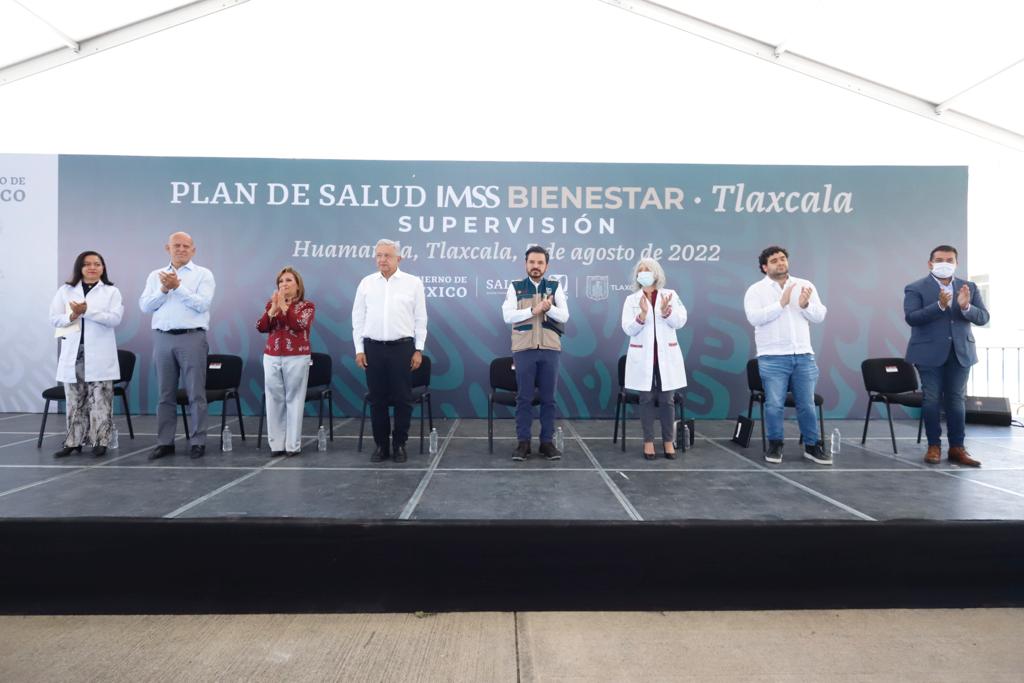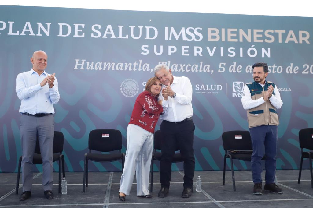 La gobernadora Lorena Cuéllar Cisneros acompañó al presidente de México, Andrés Manuel López Obrador, a supervisar el Plan de Salud IMSS-Bienestar que opera el Hospital de Huamantla, así como en el resto de nosocomios y centros de salud de la entidad, con el objetivo de mejorar la infraestructura, la cobertura de especialistas y el abasto de medicamentos, sobre todo a favor de quienes no cuentan con seguridad social.