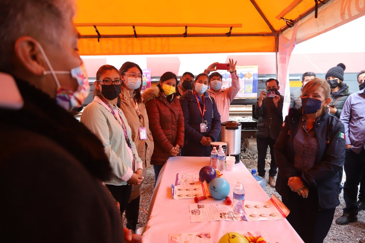 Al recorrido también la acompañaron el titular de la Secretaría de la Salud (SESA), Rigoberto Zamudio Meneses; la supervisora médico del Dr. Vagón, Elizabeth Ochoa Valencia; la gerente operativa del Tren, Gabriela León Arias, así como autoridades municipales y de comunidad.
