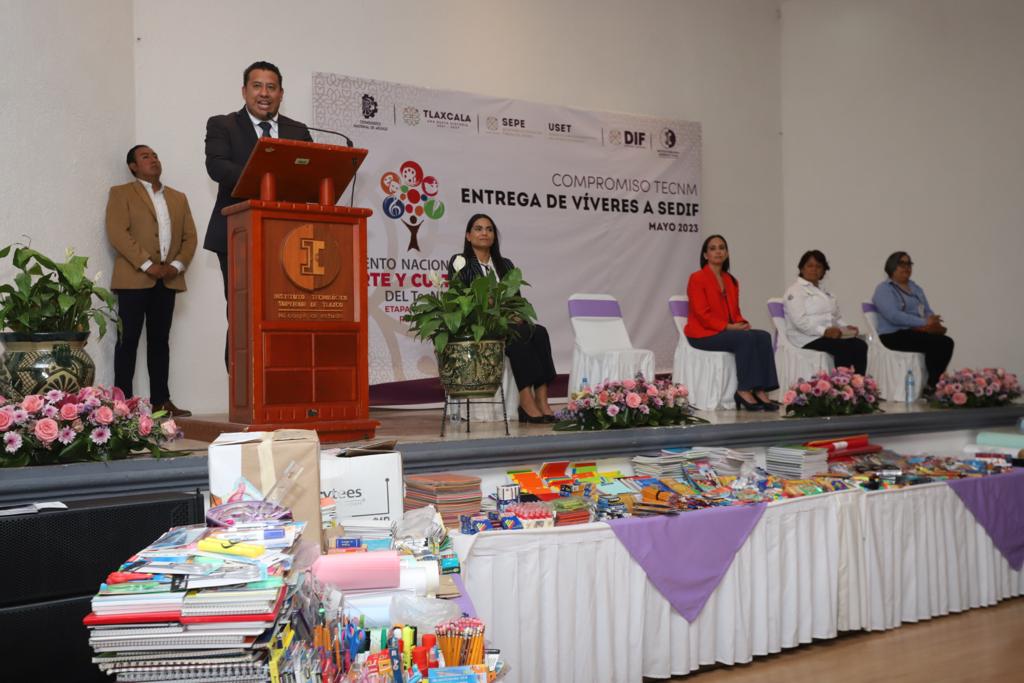 En el marco del XXXIX Encuentro Nacional de Arte y Cultura del Tecnológico Nacional de México (TecNM) con sede en Tlaxcala, autoridades del Instituto Tecnológico Superior de Tlaxco (ITST) donaron materiales didácticos a autoridades del Sistema Estatal para el Desarrollo Integral de la Familia (Sedif), con la finalidad de que la aportación beneficie a las y los niños del Centro de Asistencia Social.