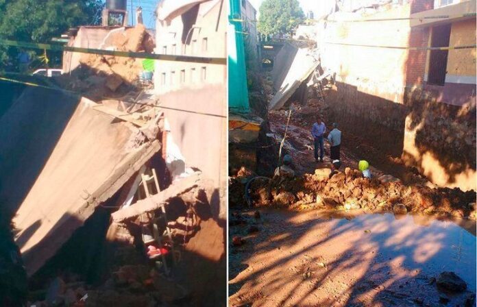 En ese mismo sitio, al menos tres casas más presentan cuarteaduras, por lo que se hallan en riesgo de sufrir la misma suerte, dijo personal de Protección Civil que acudió al sitio.