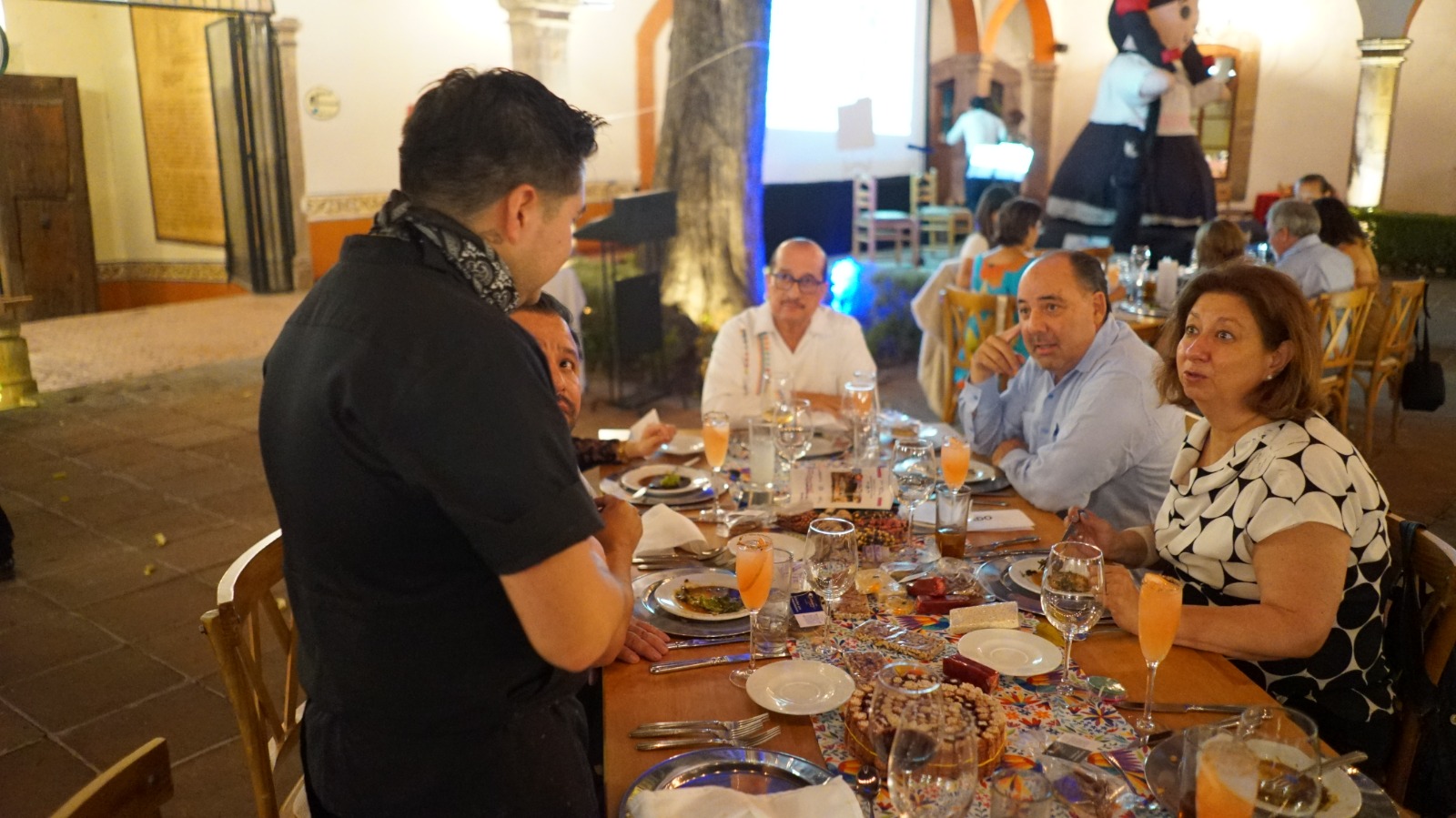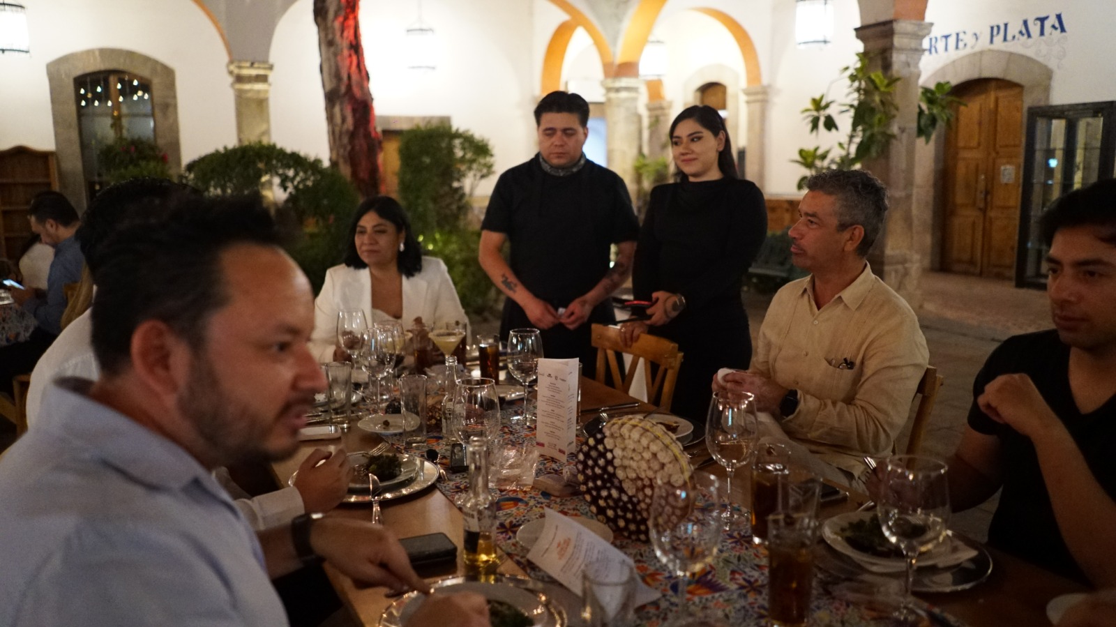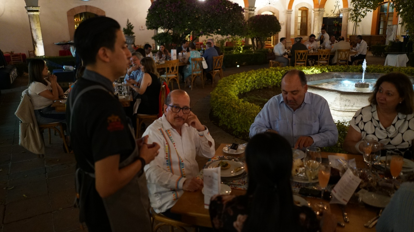 Indicó que los asistentes pudieron disfrutar de un menú de cinco tiempos del Restaurante Tequexquite, de Nanacamilpa, donde el chef Andy Salazar incluyó ingredientes locales como maíz, quintoniles, habas, huazontles, entre otros.