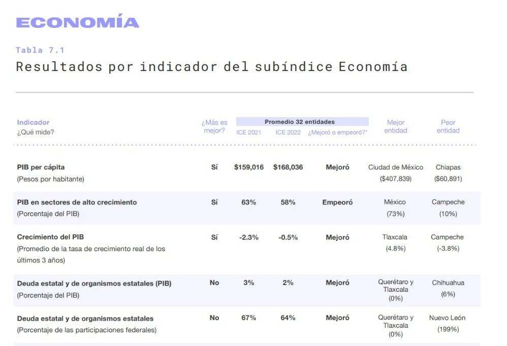 El IMCO también analizó el dinamismo de la economía, el nivel de deuda, así como la distribución de ingresos y la diversificación económica.