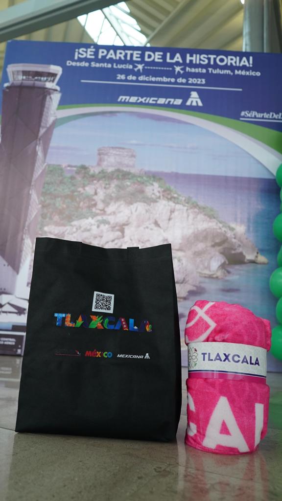 A los primeros pasajeros se les entregó un kit promocional integrado con giveaways de varias entidades, una frazada con la marca turística de Tlaxcala y un folleto que contiene información turística de cada uno de los 32 estados.