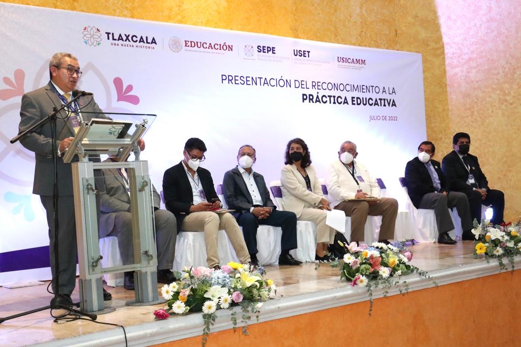 En su intervención, el jefe del departamento de la Usicamm en Tlaxcala, Alejandro Ramírez Solís exhortó a los docentes a trabajar en estos procesos a través de la narrativa que presenten para describir la práctica educativa innovadora, pertinente, eficaz y excepcional para la atención de su grupo que haya impactado en el proceso de enseñanza-aprendizaje, implementada durante la contingencia sanitaria.