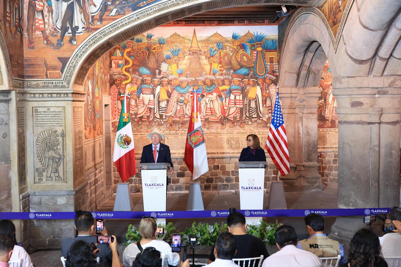 En su visita a la entidad, el embajador de Estados Unidos en México, Ken Salazar, reconoció el crecimiento de Tlaxcala, a través de sus logros en turismo, seguridad, deporte, educación, atención a migrantes e inversión, lo que refleja que es un estado con integración y liderazgo por parte de la gobernadora Lorena Cuéllar Cisneros.
