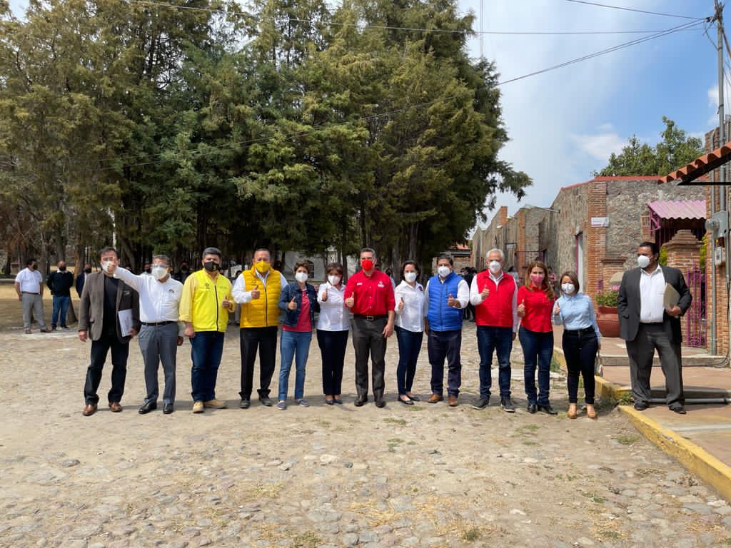 Además, los dirigentes estatales de los partidos tricolor, blanquiazul y del sol azteca, respectivamente Noé Rodríguez Roldán, Miguel Ángel Polvo y Julio César Pérez.