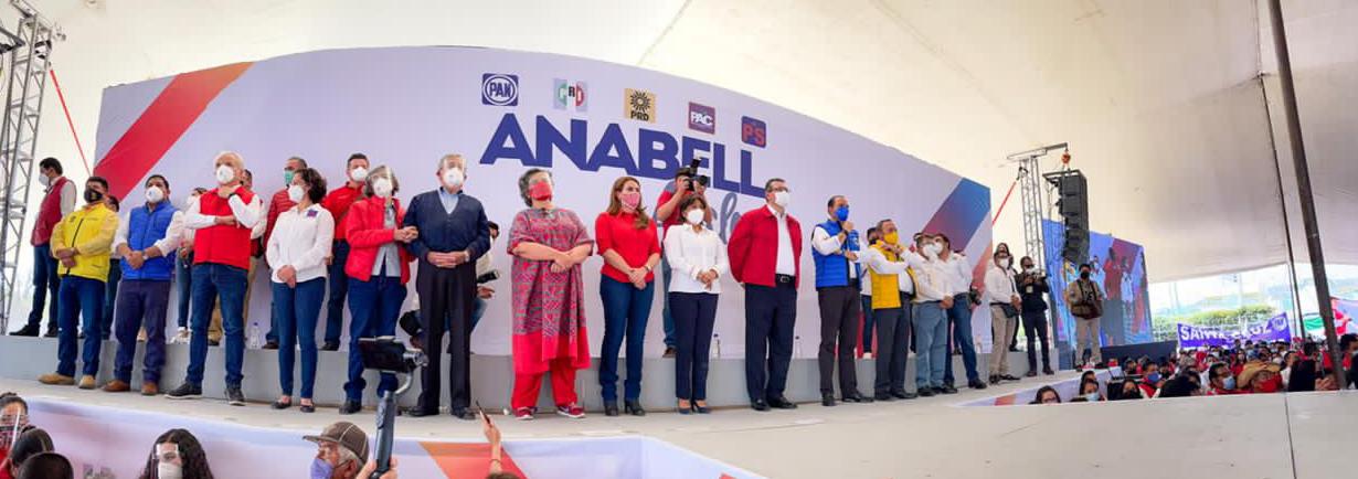 Anabell Ávalos Zempoalteca se registró este domingo como candidata a gobernadora por la coalición “Unidos por Tlaxcala”, luego de rendir protesta ante los dirigentes nacionales Alejandro Moreno (PRI), Marko Cortés (PAN) y Jesús Zambrano (PRD), así como un grupo de personalidades encabezado por el gobernador Marco Mena y los exgobernadores Beatriz Paredes y Tulio Hernández.