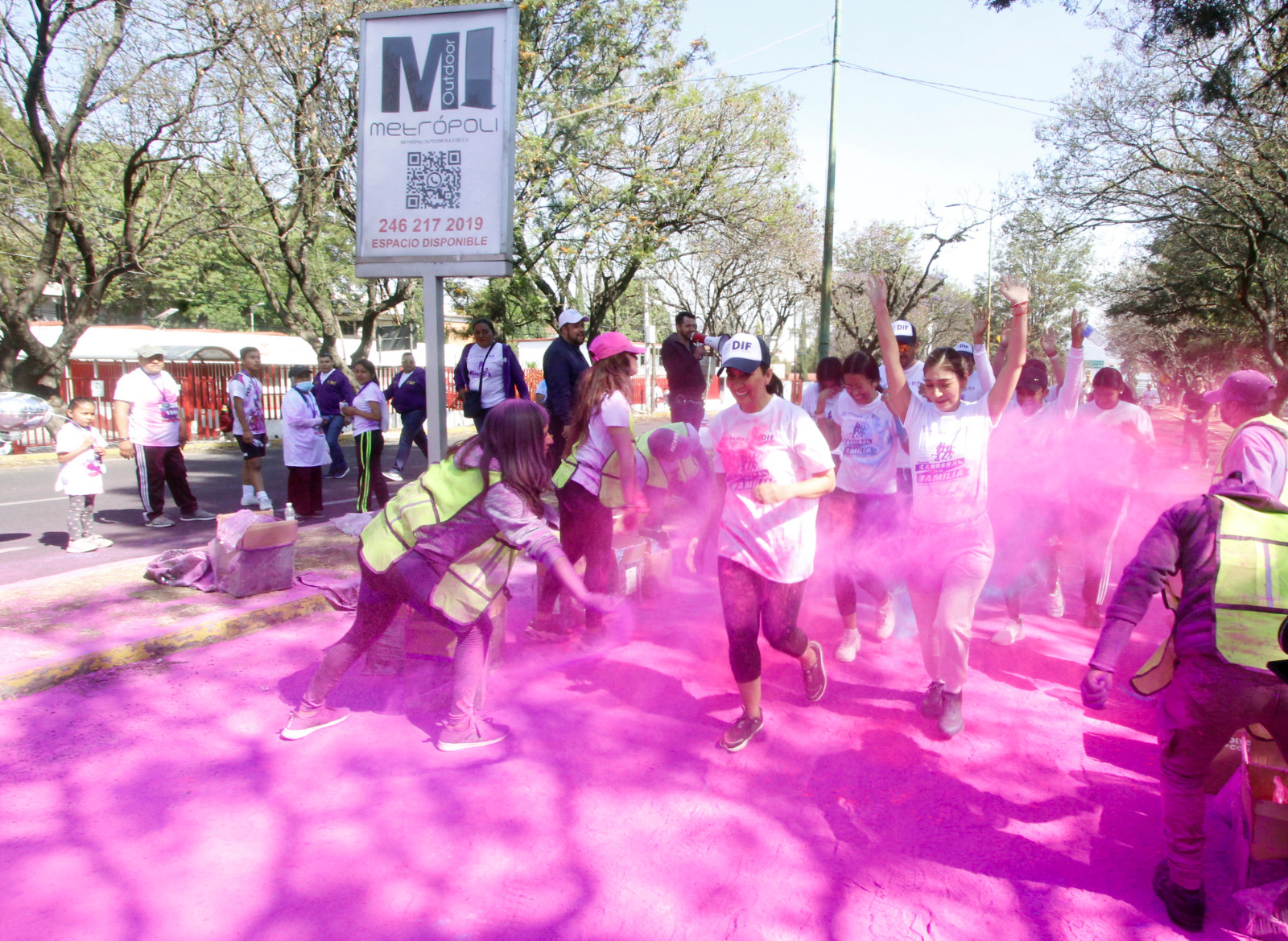 Al concluir el recorrido las familias se reunieron para realizar una explosión general de polvos de colores, música y baile.