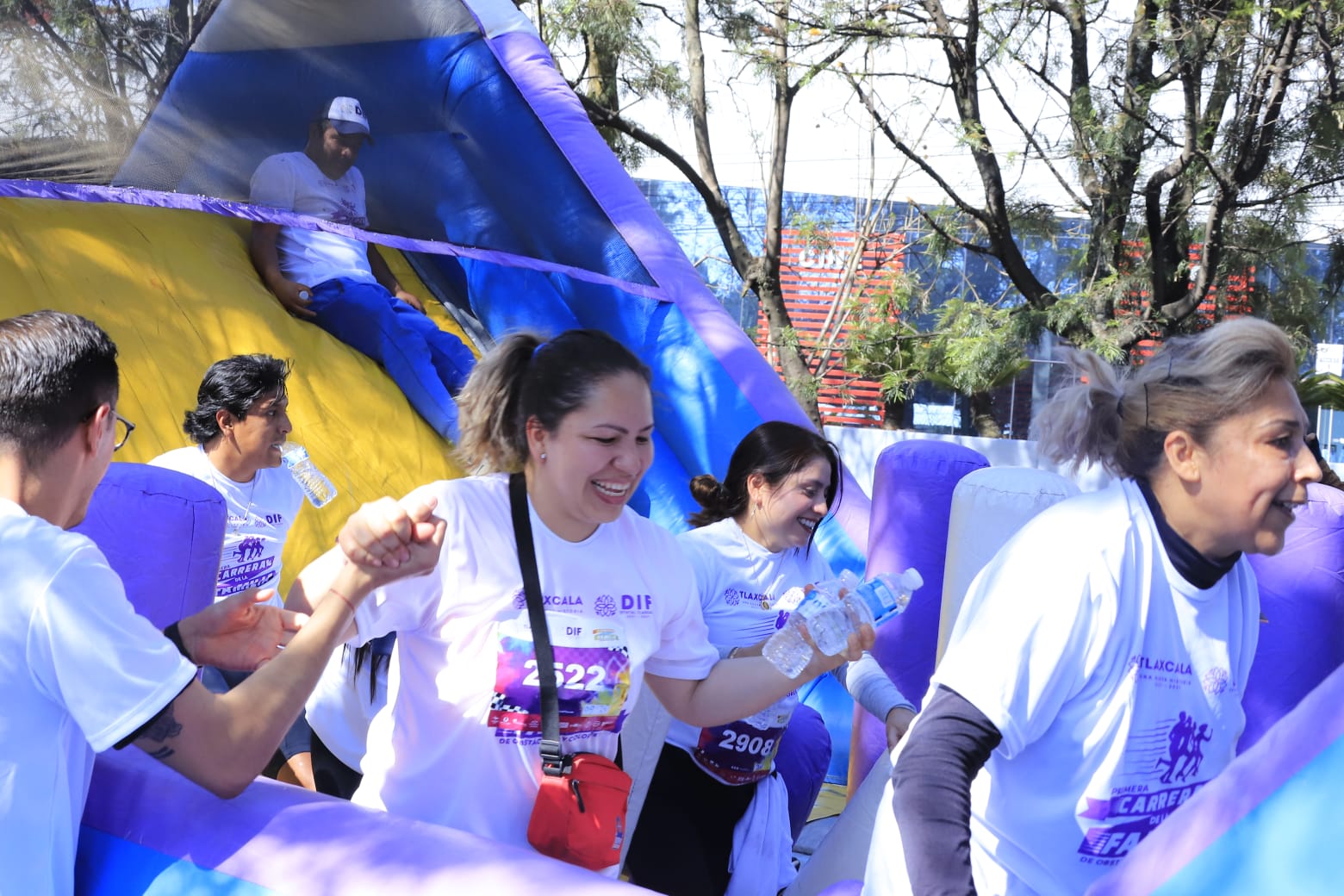 En esta carrera, que no fue de resistencia ni velocidad, sino de integración familiar y trabajo en equipo, asistieron más de 2 mil 500 niñas, niños, adolescentes, jóvenes, mamás, papás, abuelitos, tíos, personas con discapacidad, amigos, y hasta mascotas, todas y todos disfrutaron del circuito de más de cuatro kilómetros en el que tuvieron que escalar y deslizarse por grandes juegos inflables, para que finalmente llegarán a la meta dónde fueron recibidos con polvo de colores.