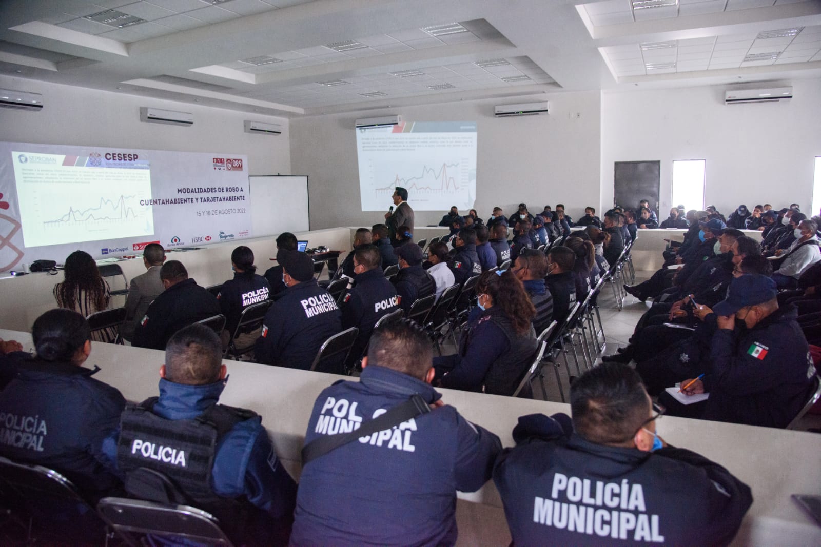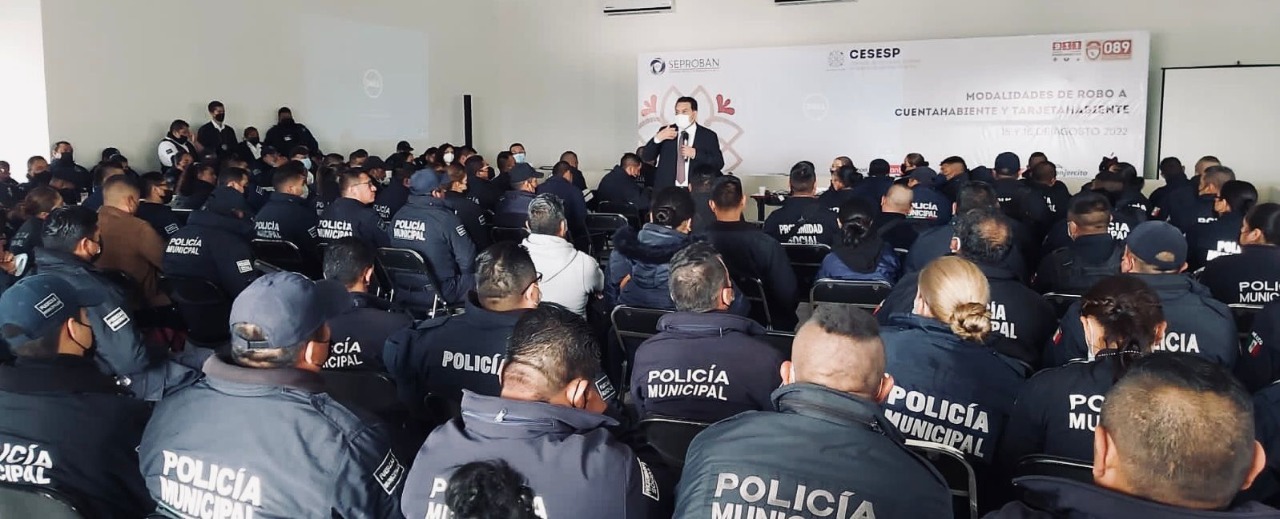 Es por ello que se realizó la capacitación a policías de los 60 municipios, de la Secretaría de Seguridad Ciudadana (SSC), elementos de la Procuraduría General de Justicia del Estado (PGJE), de la Guardia Nacional y de la Secretaría de la Defensa Nacional (Sedena), mediante el curso denominado “Modalidades de robo a cuentahabiente y tarjetahabiente”.