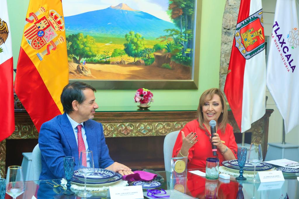 La gobernadora Lorena Cuéllar Cisneros y el embajador de España en México, Juan Duarte Cuadrado, acordaron fortalecer su relación bilateral en los rubros de seguridad, turismo, cultura, educación, medio ambiente y vinculación con inversionistas, con el objetivo de impulsar el desarrollo de la entidad y generar mayor bienestar entre la población tlaxcalteca.