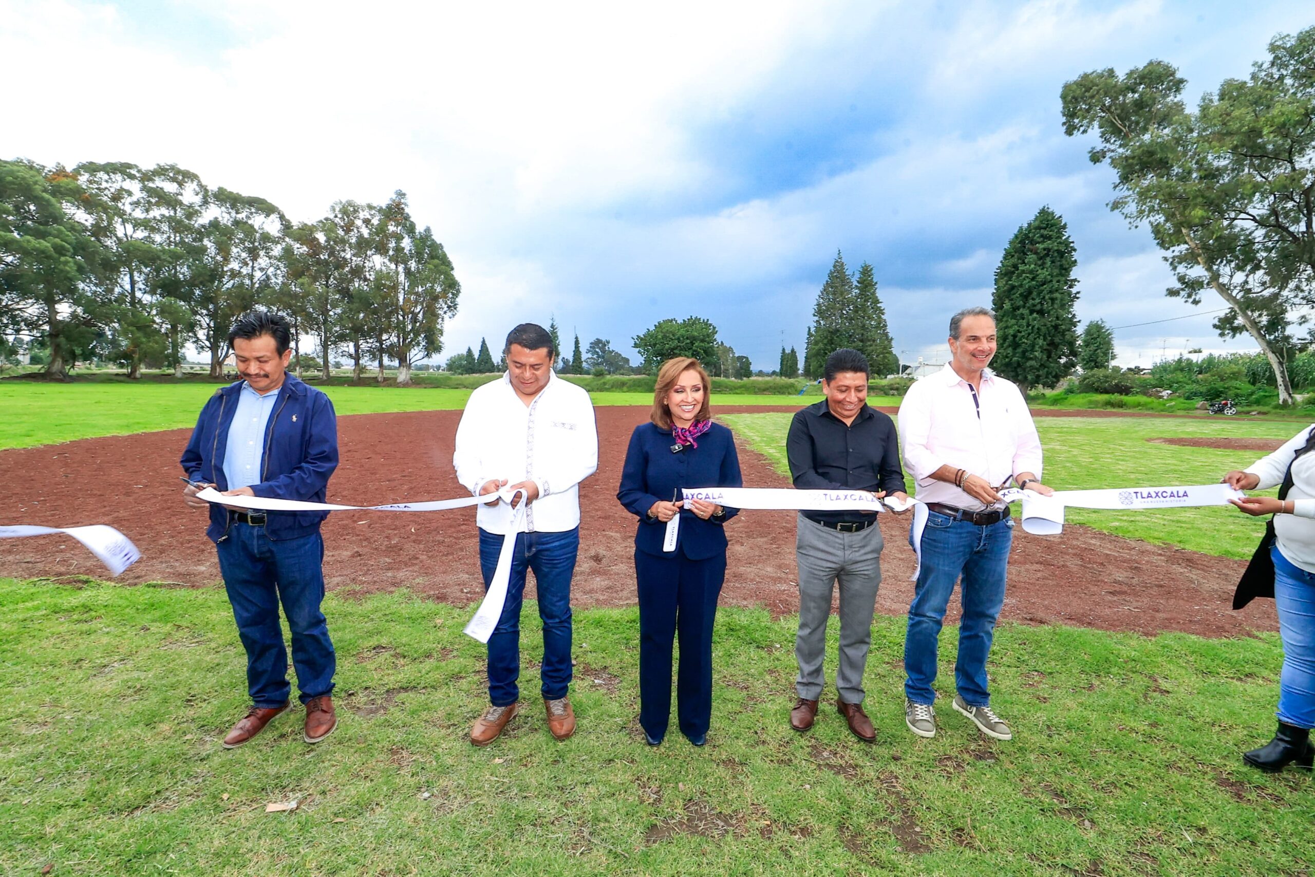 La gobernadora Lorena Cuéllar Cisneros inauguró y entregó la rehabilitación del campo de béisbol y construcción de cisterna en El Carmen Aztama, municipio de Teolocholco con una inversión estatal superior a los 2 millones de pesos y que se suma a las casi 4 mil obras ejecutadas en lo que va de la administración.